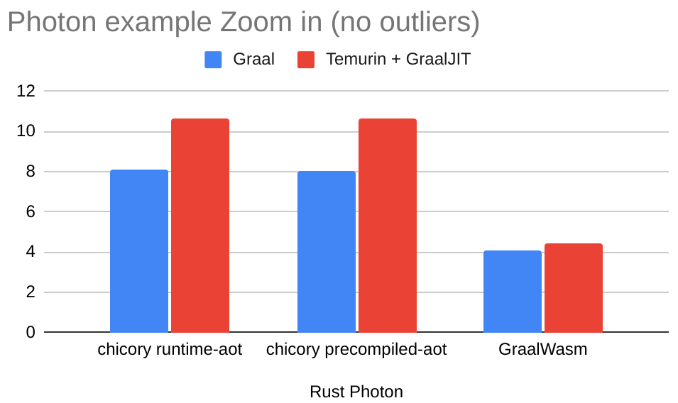 Removing the outliers of the interpreters, a close up look at the Photon benchmark: